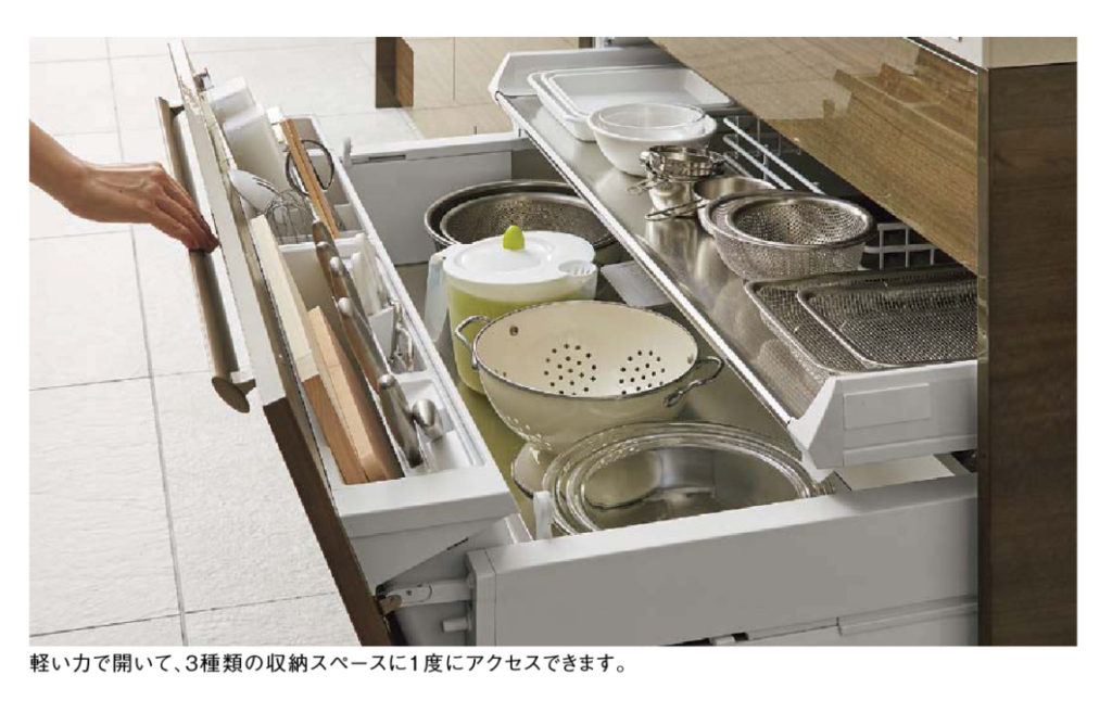 さらに扉が斜めに傾いてくれるので、引出しを開けるための力を軽減してくれます。